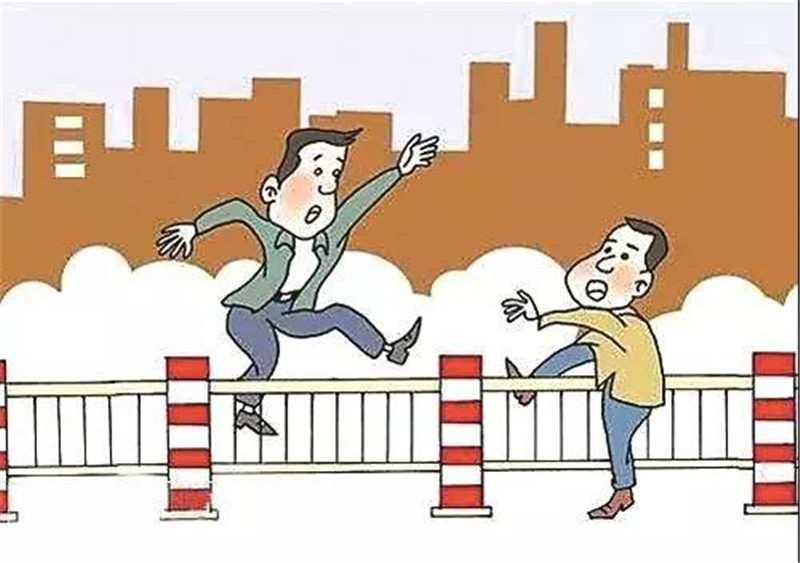 你说:”翻越护栏省时间,没事儿。”